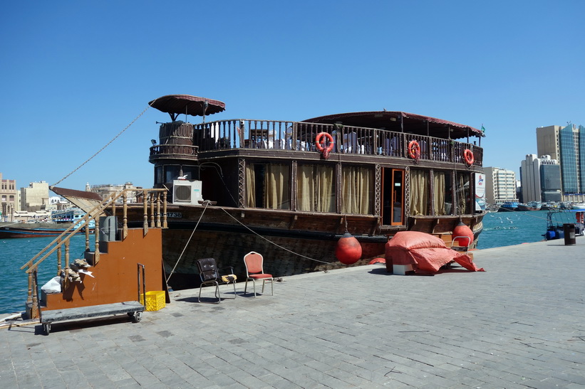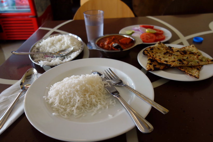 Efter Spice Souq tog jag båten över Dubai Creek till stadsdelen Bur Dubai. Detta bör man absolut göra då det är mycket trevligt samt billigt. Kostnad 1 AED. I Bur Dubai började jag att gå Hindi Lane, en gata med fantastisk atmosfär. Sedan fortsatt jag att gå genom hela det historiska distriktet, Al Fahidi historic district. Jag hade tänkt äta lunch på den mycket populära restaurangen Arabian Tea House, men det var så fullt så det det var lång väntetid bara att få ett bord. Jag beslutade mig att gå en dryg kilometer till en indisk restaurang som heter Sind Punjab. Det visade sig vara en mycket bra idé då maten var helt fantastisk.