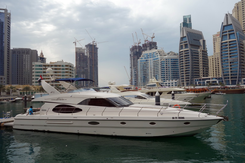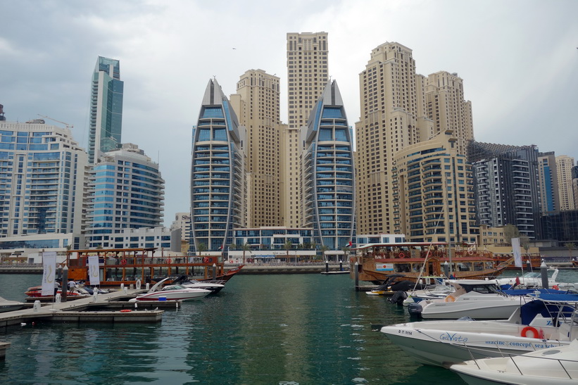 Hela eftermiddagen spenderades med att promenera runt i Dubai Marina. Området är riktigt stort och mäktigt. Man kan gå och gå i timmar bland lyxbåtar och oändligt många skyskrapor. Den fina promenaden i marinan är sju kilometer lång bara den. Bland skyskraporna är den stora höjdpunkten Cayan Tower. Byggnaden var världens högsta byggnad med 90 graders spiral när den öppnade i juni 2013. Konstruktionen är inspirerad av Turning Torso i Malmö. Samma människor ligger även bakom Burj Khalifa. 306 meter hög är denna fantastiska skapelse. Det rekordet har sedan dess övertagits av Shanghai Tower. Dubai har just nu både flest byggnader över 200 meter och även flest byggnader över 300 meter i världen. Från 2009 till 2019 har Dubai skapat en av världens största skylines. Det är svårt att inte bli imponerad av det. I anslutning till Dubai Marina ligger Palm Jumeirah, den konstgjorda landmassan i formen av en palm som sticker ut fem kilometer i havet. Palm Jumeirah är den mittersta av tre liknande byggprojekt som påbörjades i Dubai år 2001. Tyvärr räckte inte min tid till att besöka ”palmen” idag.