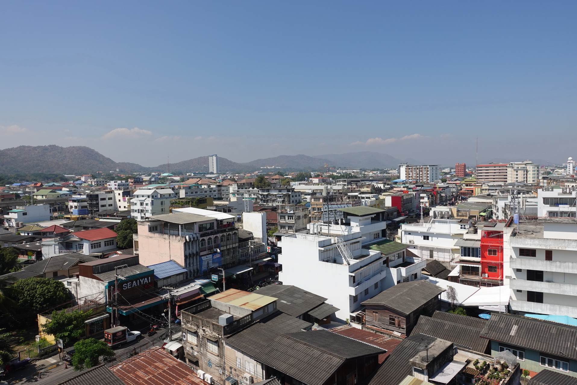 (25/1-26) Idag blev det en halvdagstur till Cha-Am. Denna charterturistort ligger i provinsen Phetchaburi till skillnad från Hua Hin som ligger i provinsen Prachuap Khiri Khan. Jag har passerat Cha-Am många gånger utan att stanna, främst under 90-talet på väg ner till Surat Thani i södern med nattbuss från Bangkok. Jag tog en buss upp från centrala Hua Hin och avståndet var ungefär 27 kilometer. Det blev en kort promenad längs stranden och sedan lunch på en seafood-restaurang. När jag skulle hem kom jag på att det finns ett tempel i närheten i Hua Hin jag vill besöka. Wat Khao Noi heter templet. Jag tog en taxi dit från Cha-Am. Det visade sig vara väldigt trevligt och nästan helt tomt på folk. Utsikten över Hua Hin är vacker. Från templet tog jag en promenad på närmare tre kilometer tillbaka till hotellet.