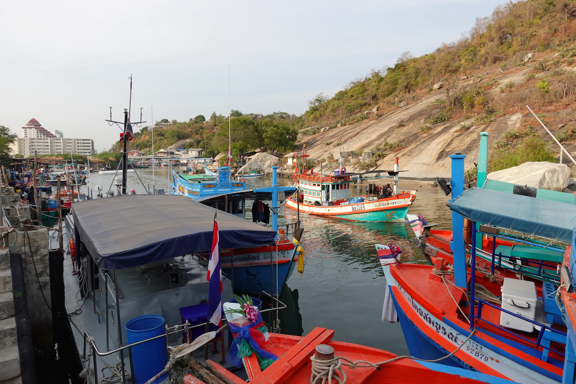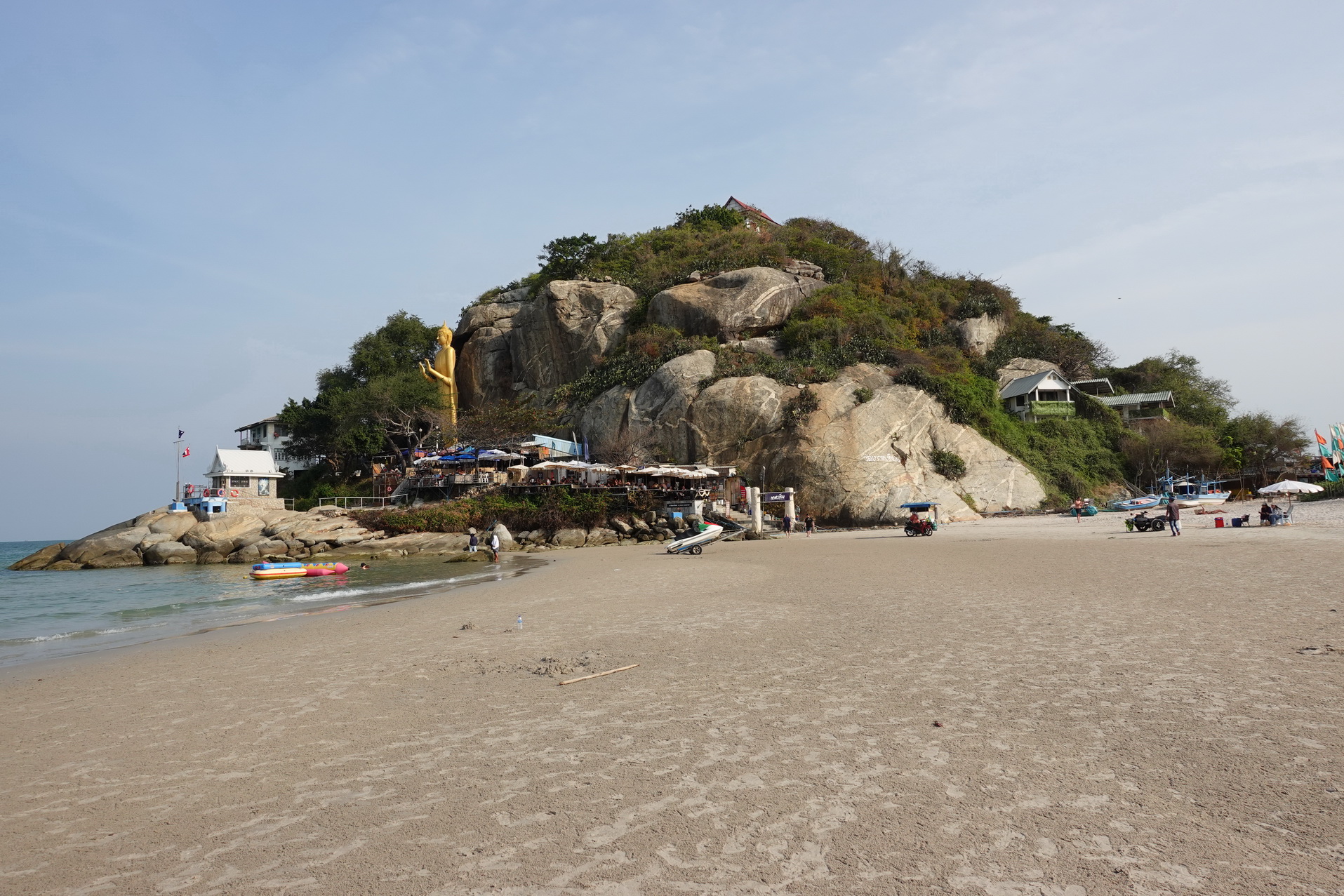 (18/1-26) För första gången på en vecka har jag utforskat lite utanför mina rutinmässiga kvarter. Vid mina tre tidigare besök till denna charmiga lilla stad har jag bara varit här några enstaka dagar varje gång. Jag borde passa på att utforska lite när jag nu är här en längre tid. Efter en vecka av bara lata dagar med lite simning på morgonen så tog jag en songthaew till Khao Takiab beach. Songthaew-rutten med sista stopp vid Khao Takiab beach börjar vid nattmarknaden som ligger vid mitt hotell vilket är väldigt praktiskt. Khao Takiab beach är uppdelad i två delar. Den norra delen innefattar den sydligaste delen av Hua Hin beach och den andra ligger söder om Monkey mountain som separerar de båda. Den södra sidan kallas även Suan Son. Jag besökte båda och gick även upp en bit mot Monkey mountain. Jag avslutade med att promenera hela södra sidan vilket tog minst en och halv timme. Det var trevligt att få göra något annat idag.