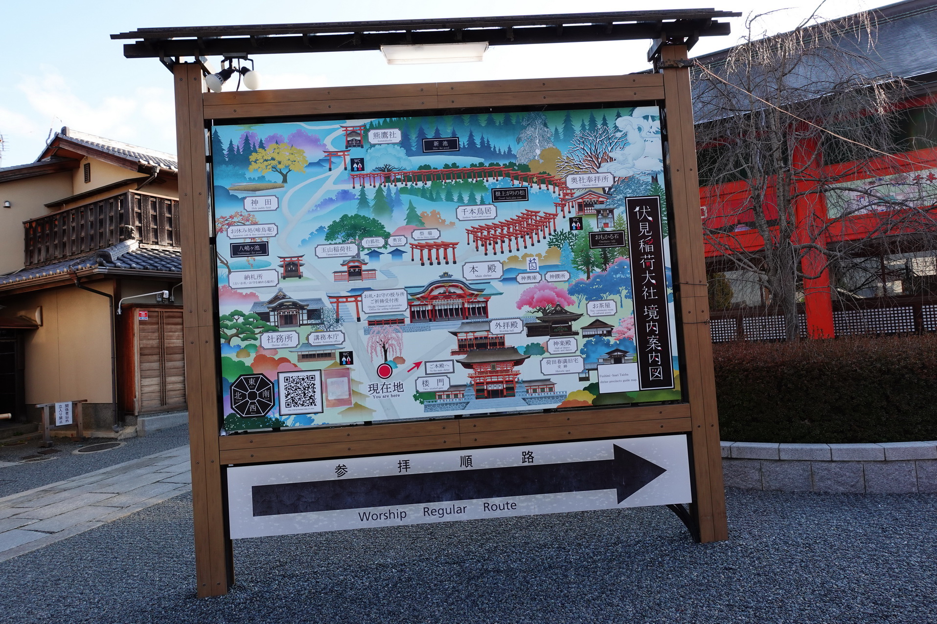 Dagens agenda började med Fushimi Inari Taisha (shintohelgedom). Jag tog mig dit via tunnelbana plus JR-tåg (pendeltåg). Denna otroliga shintohelgedom är belägen vid Inari-bergets fot och är ett absolut måste vid ett besök till Kyoto. Ungefär två timmar spenderade jag på platsen och merparten av tiden ägnas åt en stämningsfull vandring uppför Inari-berget (233 m) genom tusentals ikoniska röda torii-portar. Anledningen till att jag var uppe extra tidigt var för att slippa dom extrema mängderna med folk. Det visade sig tydligt när jag kom tillbaka ner till Inari station. Jag stötte på en stor mängd människor på väg upp och kände mig då lite extra nöjd med mitt besök.