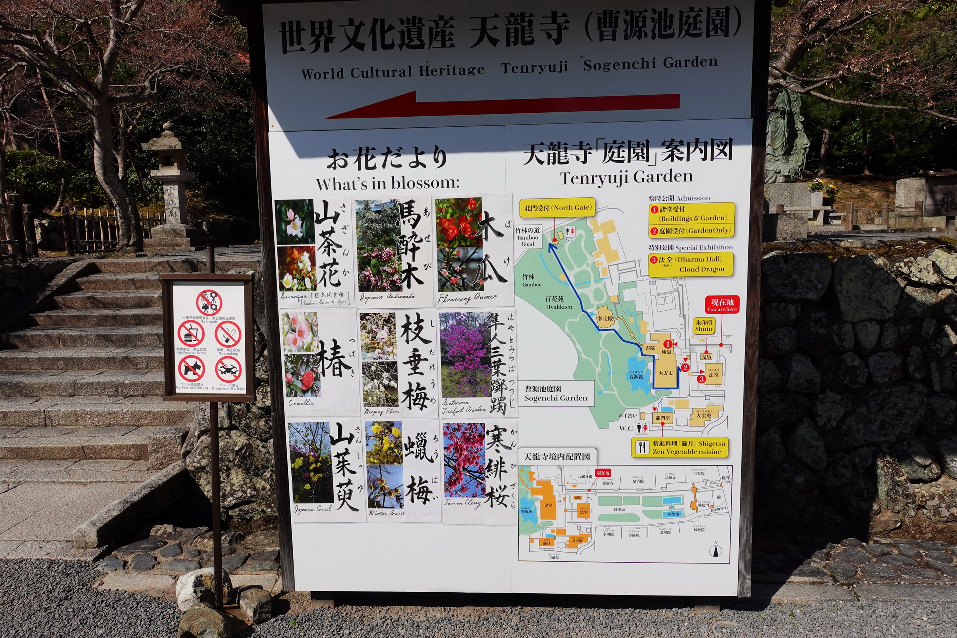 Ovan bilder från Arashiyama Bamboo Grove, områdena på båda sidor av Togetsukyo Bridge, Iwatayama Monkey Park och Tenryu-ji-Garden.