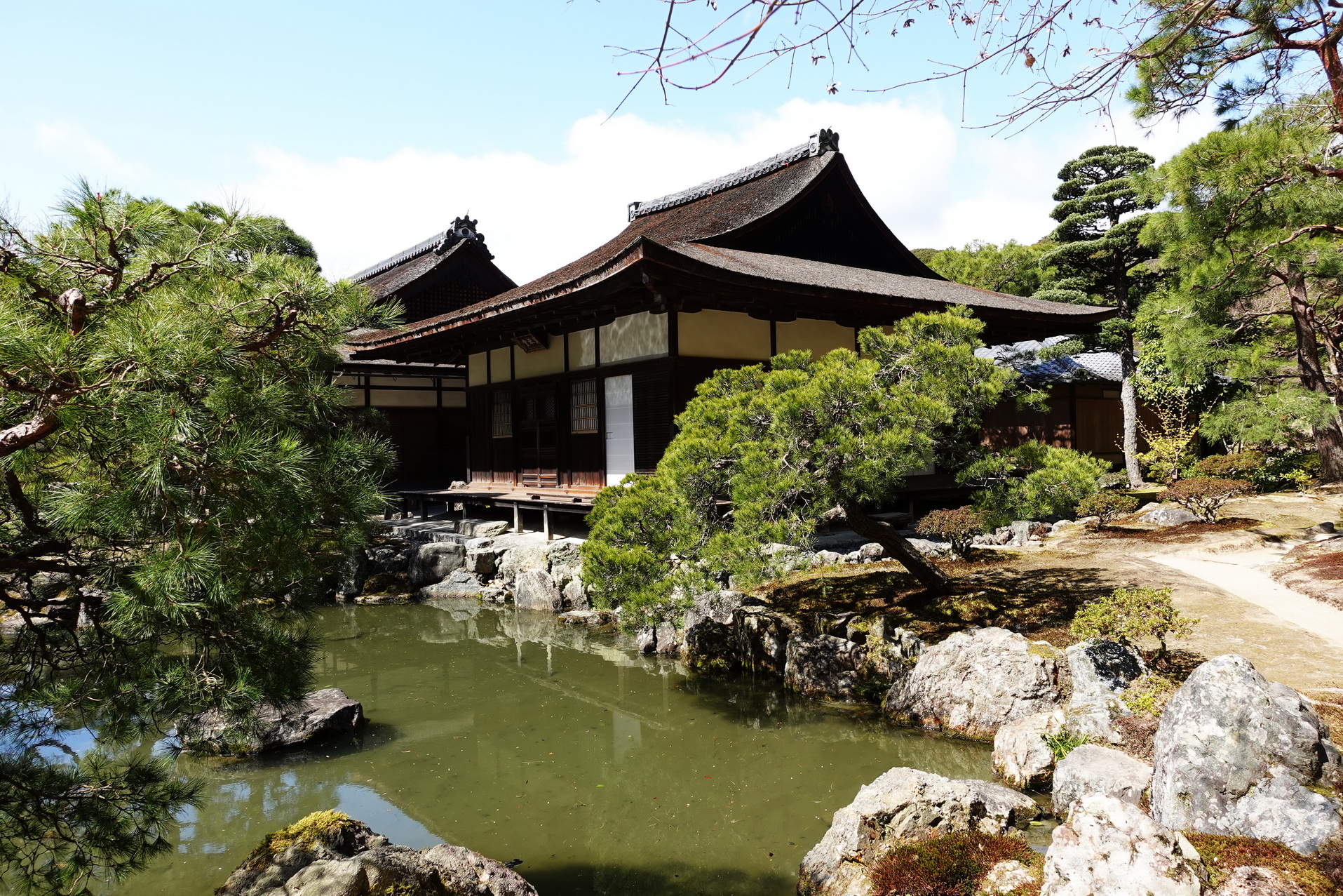 Jag promenerade från hotellet via Heian-jingū Shrine (shintohelgedom) till Nanzen-ji (buddhisttempel). Sedan fortsatte jag till nästa tempel, Eikan-dō (buddhisttempel) som ligger lite norr om Nanzen-ji. Eikan-dō betalade jag inträde till och det var verkligen värt avgiften Otroligt vackra byggnader, framförallt invändigt. Nästan overkligt vackert. Som grädde på moset så fick jag vara med en ritual i den sista byggnaden jag besökte. Det var munkar som bad och genomförde rituella ceremonier. Bönen består inom buddhismen av recitation av sutror (buddhistiska skrifter), chanting av mantran och meditation. De två förstnämnda var det jag fick uppleva. Det kändes väldigt stämningsfullt och det var otroligt färggrant på alla sätt och vis. Vid Eikan-dō finns den södra entrén till Philosopher’s path, som också var med i planeringen. Philosopher’s path är en fin vandring mellan Eikan-dō och Ginkaku-ji (buddhisttempel). Jag hade inte tänkt betala in mig på Ginkaku-ji, men när jag kom fram till entrén såg det alldeles för fint ut för att låta bli. 500 Yen (ungefär 30 kronor) i entré är dessutom inga pengar att tala om. Ginkaku-ji är även känd som silverpaviljongen.