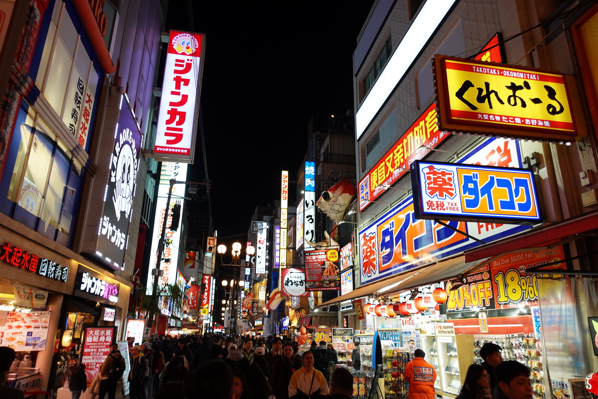 På kvällen bestämde jag mig för att åka ett par tunnelbanestationer till Namba station för att kolla in utelivet i Dotombori som också är känt för sina ina intensiva neonljus, enorma 3D-skyltar och livliga atmosfär vid kanalen. Det blev en mycket sen middag där och promenad runt i området runt Glico Sign. Det var en riktigt trevlig upplevelse och jag hade dessutom kameran med ikväll. Jag fotar nästan aldrig kvällar och nätter. Idag var det väldigt givande och det var också riktigt kul.