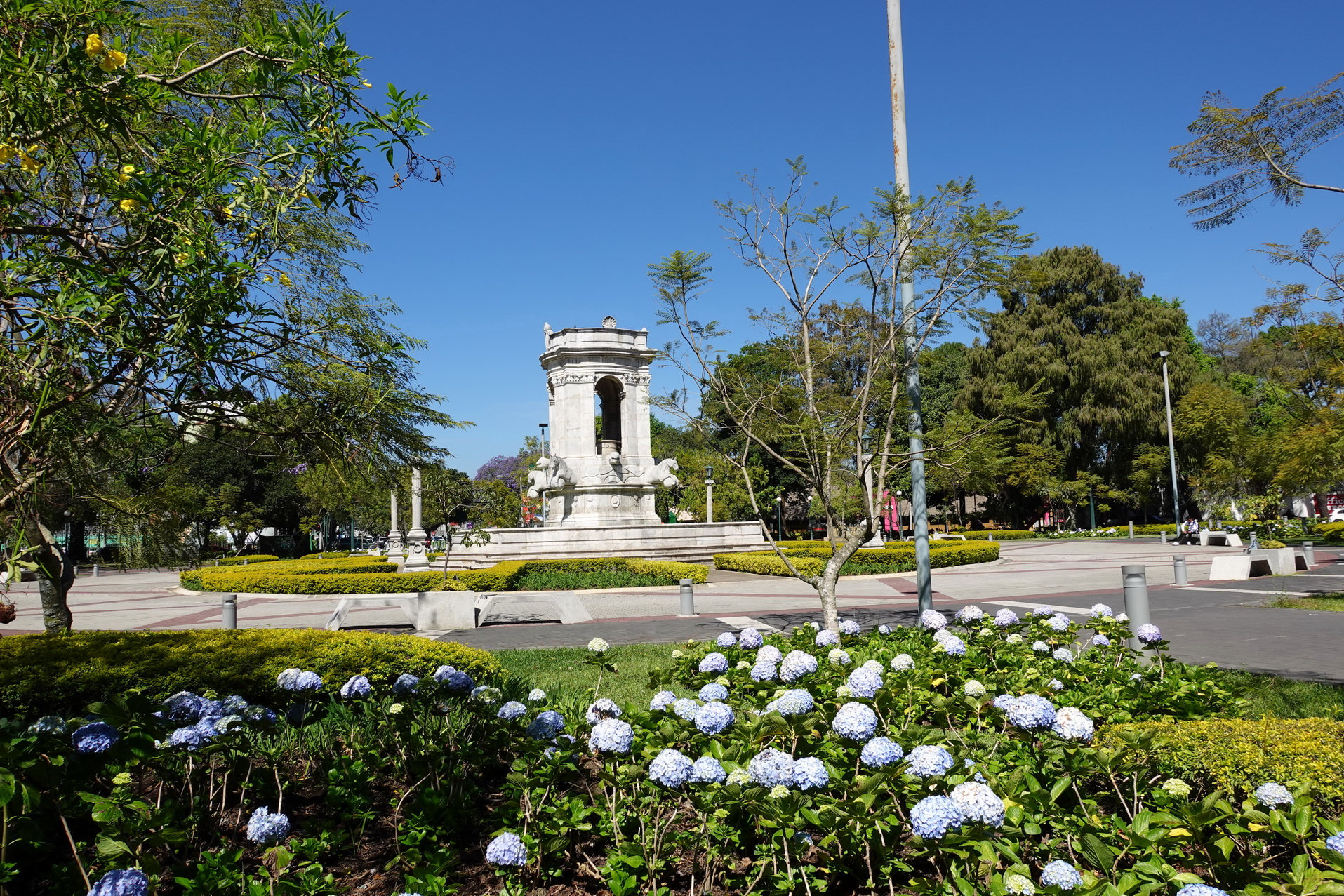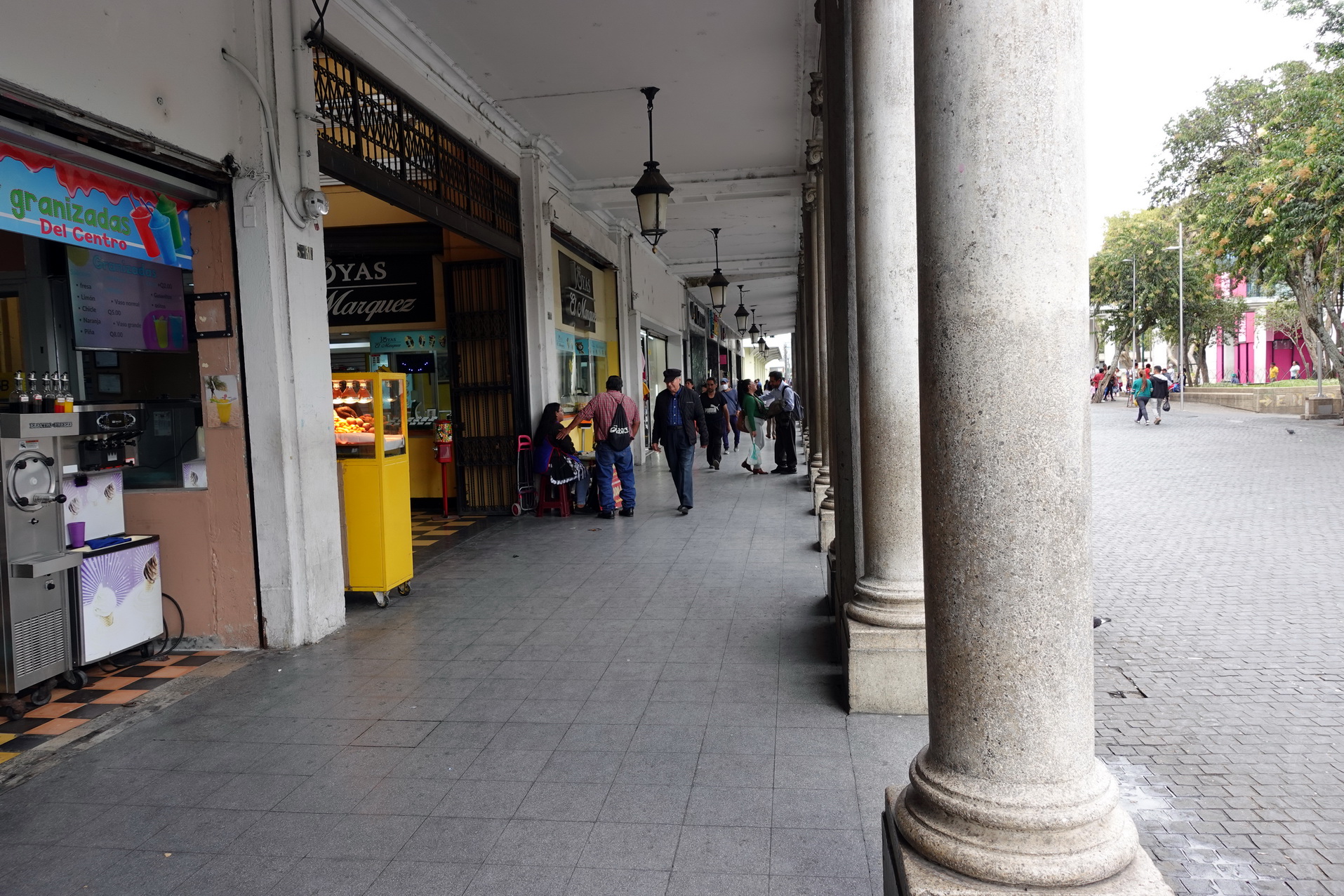 Jag började med att boka en Uber från hotellet till Parque Central (Plaza de la Constitucion) som är hjärtat i Zona 1. Därifrån utforskade jag flera kyrkor och parker samt efter lunch även Mercado Central (centrala marknaden). Lunch intogs på fina Restaurante El Adobe som ligger en bit söder om Parque Central. Efter 6-7 timmar i Zona 1 tog jag en Uber tillbaka till hotellet i Zona Viva. Jag kände mig mycket nöjd med dagen när jag vid middagen på grekiska restaurangen Del Griego satt och reflekterade över dagen. Precis som igår var jag lite nervös över säkerheten i Zona 1 innan ankomst. Det är rätt så naturligt efter allt jag hört om denna stad. Det gick snabbt över efter att jag gått omkring en stund. Det rörde sig lite mysko folk här och där när man började komma i utkanten av zonen, men inget värre än i vilken storstad som helst i världen. Utslagningen och fattigdomen känns dock väldigt närvarande överallt. De centrala delarna av Zona 1 patrulleras hårt av polis vilket förmodligen gör att den värsta kriminaliteten hålls borta. Samtidigt så är det våldskapital gängen besitter här väldigt stort. Jag försöker hela tiden hålla koll på vad som sker runt omkring mig och helst bara ta fram kamera eller telefon när det känns säkert. Det här gör självfallet att fotograferandet inte kan praktiseras på samma sätt som i många andra delar av världen.