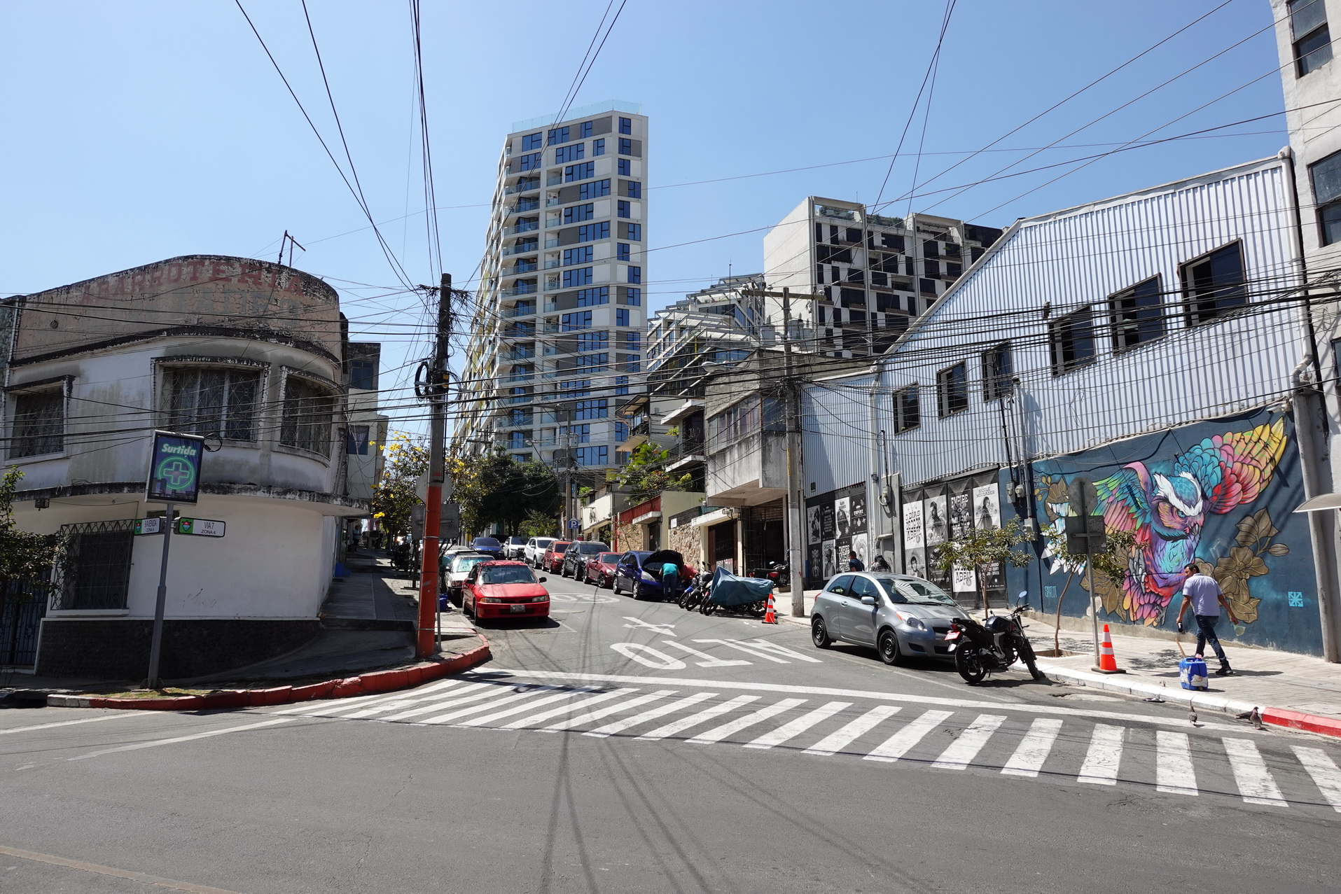 (15/2-24) En ny huvudstad att utforska är alltid något utöver det vanliga för mig. Guatemala City är en stad jag har hört mycket om genom åren. Stefans pappa Karim bodde i staden i sex år innan han flyttade hem till Sverige. En av de stora anledningarna till flytten var den våldsamma och omfattande kriminalitet som ständigt är närvarande på gatorna här. Som vanligt i Latinamerika är skillnaden mellan fattig och rik enorma. Detta avspeglar sig i att de fina stadsdelar som finns känns som helt andra världar. Här i Zona Viva har jag precis den känslan. Även om det med all säkerhet förekommer brottslighet på gatorna här också, så lär det skilja sig dramatiskt jämfört med resten av staden.