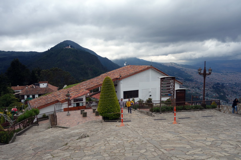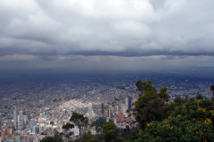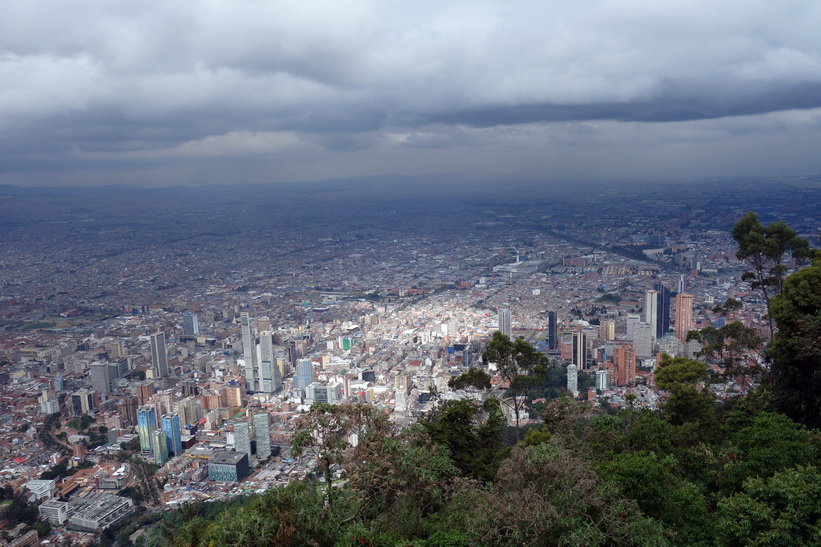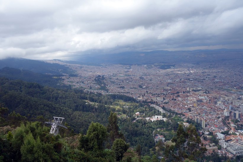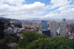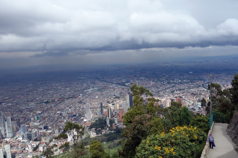 Utsikten över Bogotá från Monserrate är magnifik. Kyrkan på Monserrate tillsammans med en kulle som är lite högre som heter Guadalupe och är belägen en bit söderut är två av Bogotás mest kända landmärken. Megastaden breder ut sig i syd-nordlig riktning som ett täcke i dalen nedanför. Jag spenderade en dryg halvtimme på toppen innan jag gick ner igen. Jag hade gärna stannat längre om inte tunga regnmoln hade börjat rulla in från väst. Leden är nog väldigt hal att navigera om den är blöt. Detta ville jag undvika till varje pris. Det var jobbigare att ta sig ner än upp.