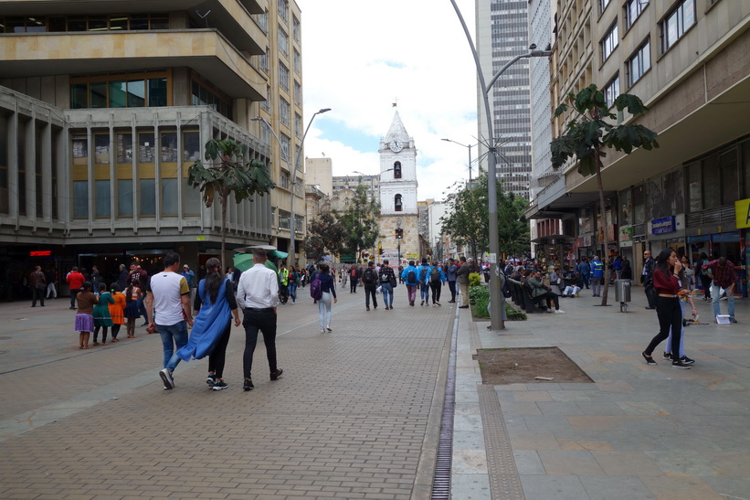 Bilder ovan från området runt Iglesia de San Francisco, Parque Santander och den del av Carrera 7 som är gågata.
