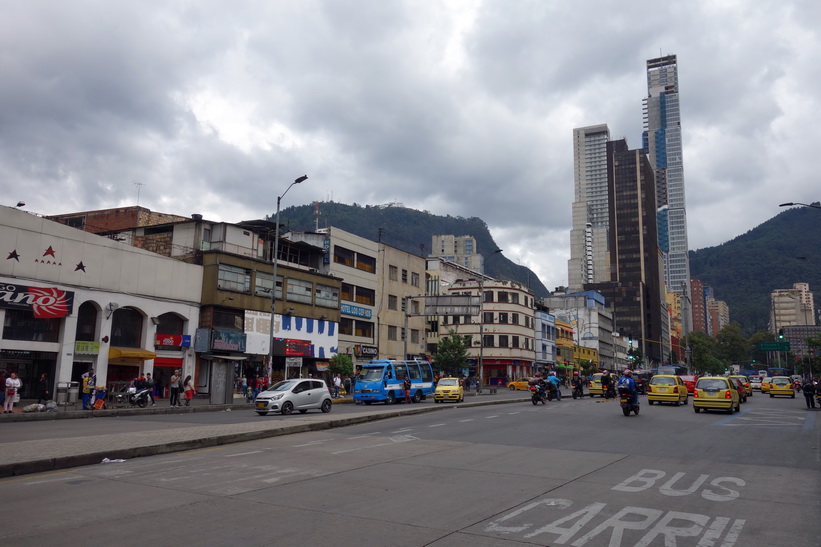 Ungefär åtta timmar in på flygningen började jag få migrän som bara blev värre och värre. De sista två timmarna mådde jag också dessutom väldigt illa. Det var fyra riktigt plågsamma timmar. Lite trist när allt annat flutit på så bra. Jag brukar få migrän när jag flyger långt och jag vet inte riktigt vad det beror på. Det första man kommer att tänka på är vätskebrist, men tyvärr är det inte så enkelt i mitt fall då jag alltid ser till att dricka extra mycket innan och under flygningen. Det är längesen jag slutade tro att det är psykologiska faktorer som ligger bakom. Denna typ av migrän får jag ibland hemma också. I Bogotá var det riktigt jobbigt i immigrationen då det var enorma köer. Jag fick verkligen kämpa för att orka stå kvar i kön. Det positiva var att det gick väldigt snabbt för mig när det väl blev min tur. Jag hade förbeställt taxi via hotellet och det fungerade perfekt. En man stod med en skylt med mitt namn på, något jag inte är särskilt bortskämd med. När jag gick fram till honom så blev han väldigt glad. Eftersom jag var försenad hade han blivit mer och mer orolig att jag inte skulle dyka upp. Framme vid hotellet fick han rejäl dricks vilket gjorde honom väldigt glad. Detta med att förbeställa taxi är en del av ett förhöjt säkerhetstänk också såklart. Man väljer helt enkelt inte en taxi på chans i en sådan här stad.