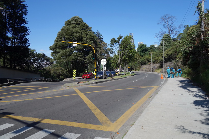 Utsiktsplatsen (längs Av. Carrera 3 Este) med de fina vyerna över megastaden Bogotá. På två av bilderna ovan syns även Colombias högsta byggnad, 216 meter höga BD Bacatá Torre Sur färdigställd 2018