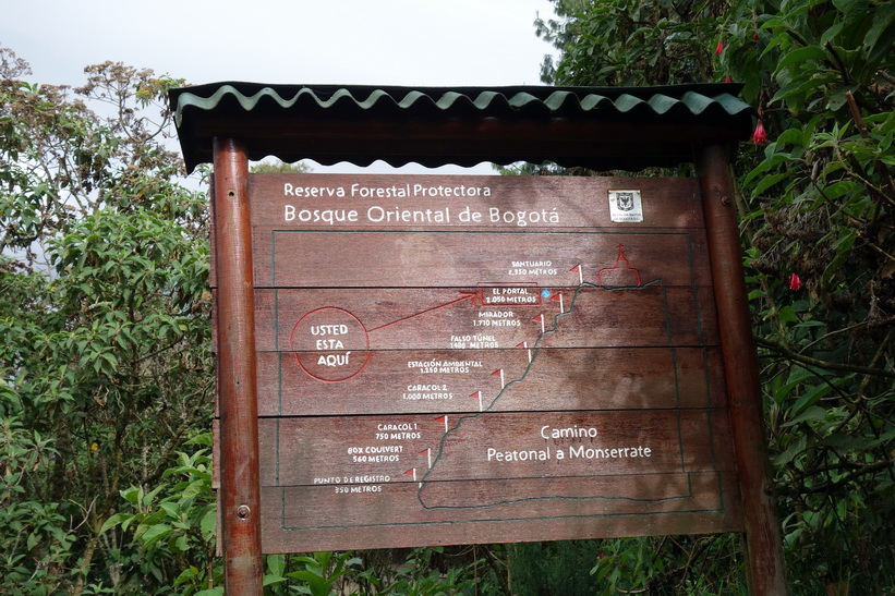 Framme vid starten på leden upp till Monserrate möts jag av en stängd grind och ett tråkigt besked från en man som verkar jobba där. – Esta cerrado hoy (det är stängt idag), säger han. Utöver det säger han något mer på spanska som jag inte förstår. Förmodligen förklarar han varför det är stängt. Jag får för mig att det är någon form av scam och fortsätter ner till linbanestationen. Där får jag samma besked av en man som jobbar som säkerhetsvakt. Min bästa gissning till varför det är stängt blir till slut att det är någon form av underhåll av leden som utförs just idag. Imorgon skall det vad jag förstår vara öppet igen.