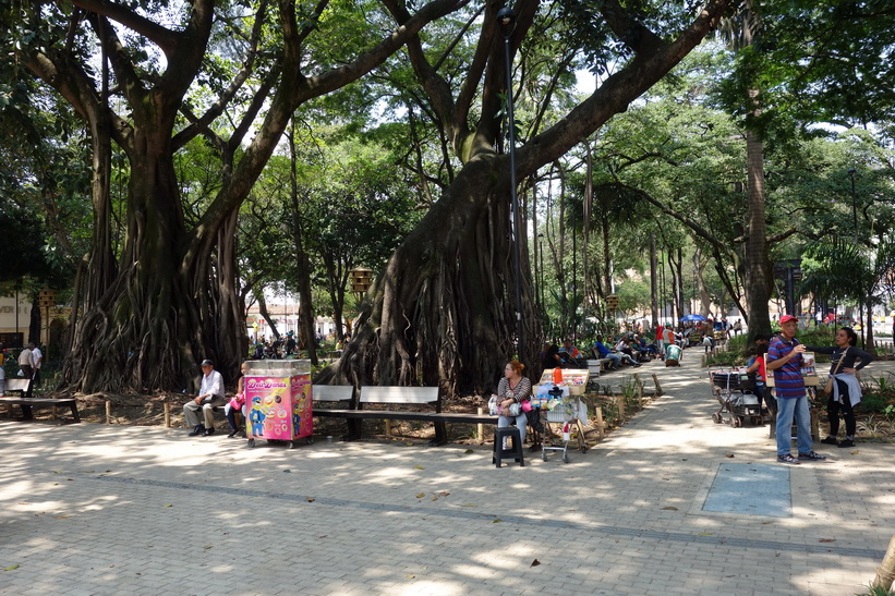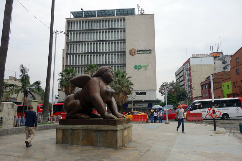 Eftermiddagen spenderades runt Plaza Botero/Palacio de la Cultura Rafael Uribe Uribe, Parque Berrío och omgivningarna däromkring. Dessförinnan var jag och kollade in ett nytt torg, eller kanske snarare park om man går efter namnet, Parque San Antonio. Här finns den berömda Botero-statyn som sprängdes sönder i ett terroristattentat 1995 med 30 döda och 200 skadade som följd. FARC tog på sig ansvaret för bombningen. Ersättaren Pájaro de Paz återfinns vid dess sida.