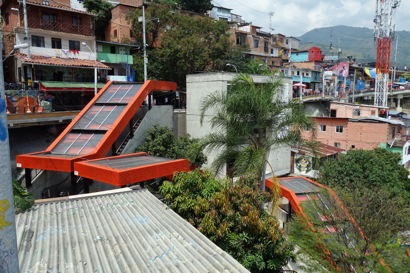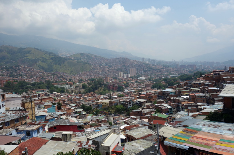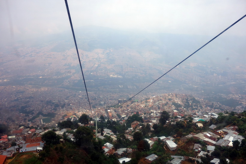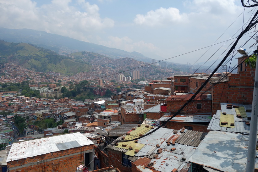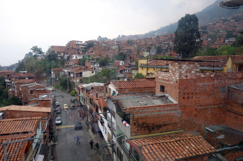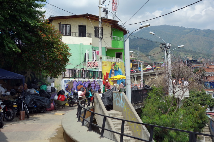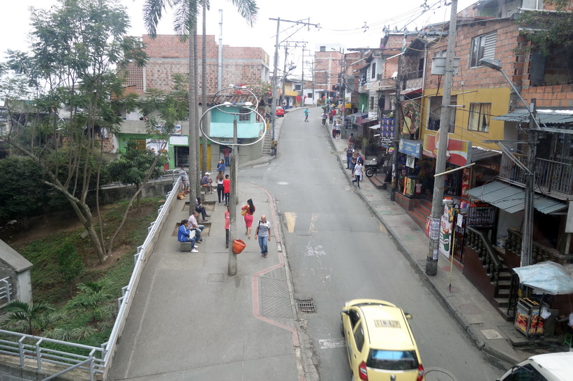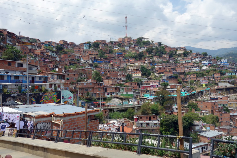 (14/3-20) En lugn dag i Medellín har det varit idag. Jag började dagen med att ta mig till den östra sidan av Medellín via metro först från station Poblado till station San Antonio. Från San Antonio tog jag Medellíns enda spårvagnslinje till station Oriente och därifrån linbana till Villa Sierra. Här uppe ligger Comuna 8 som man kan säga är den östra sidans motsvarighet till Comuna 13 på västra sidan dalen. Denna sida kontrollerades av Pablo Escobar och i omgivningarna ligger Barrio Pablo Escobar, en av få platser i Colombia där Pablo fortfarande beundras öppet. Precis som i Comuna 13 så finns här den enda enda vägen ut ur staden. I det här fallet österut. Jag hoppade ur linbanan på station Villa Sierra (som ligger högst upp på linjen) och beundrade utsikten innan jag åkte ner igen. Detta på inrådan av min guide från Comuna 13-turen igår. Han tyckte det skulle vara en onödig risk för mig att ta att vandra omkring i detta område. Lika bra att lyssna på folk som bott här i hela sitt liv.
