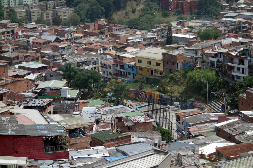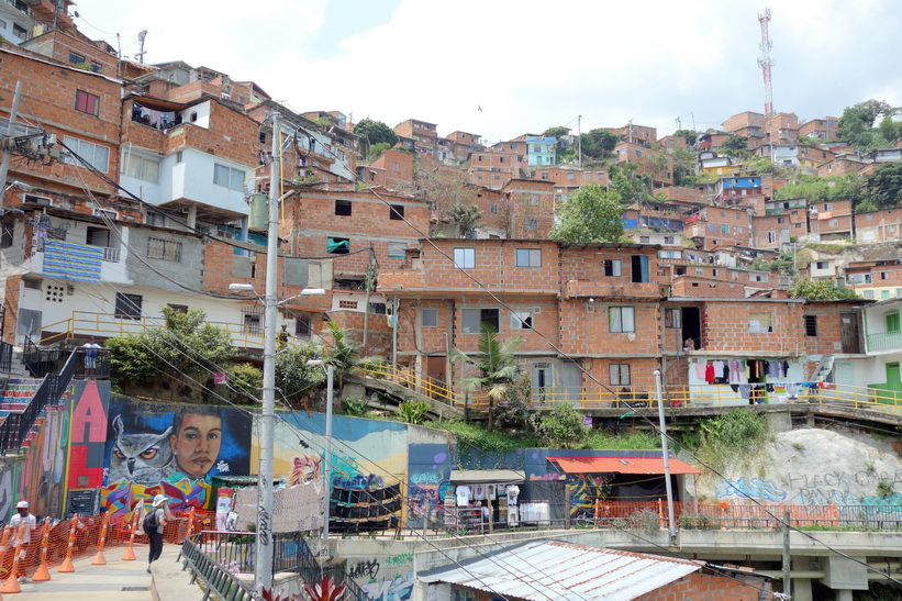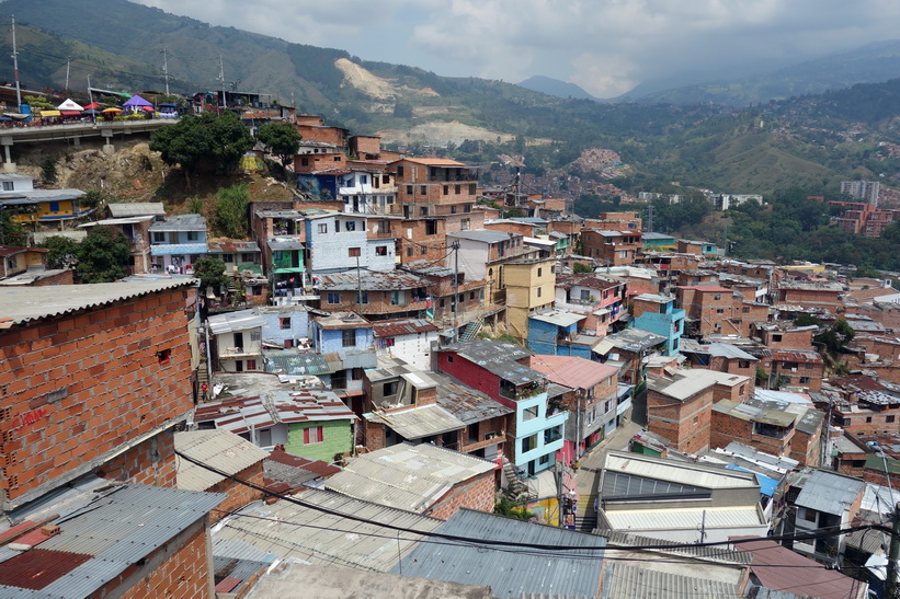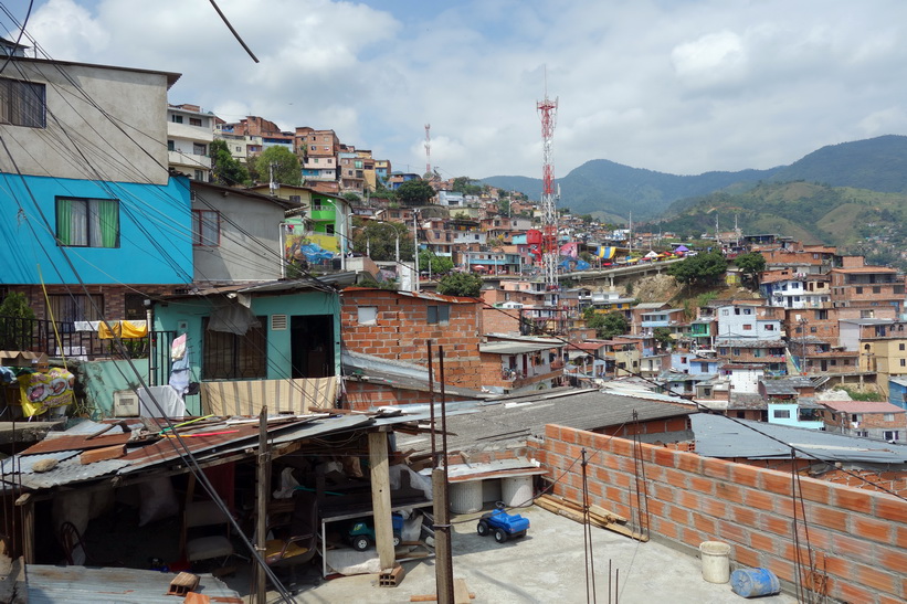 Först lite bakgrund om Comuna 13. Comuna 13 är en stadsdel som ligger i västra Medellín uppe på bergssidan. Stadsdelens historia är minst sagt känslosam och omtumlande. Längs bergssidan kryper Comuna 13 runt och upp längs kullarna som är fullpackade med cement- och tegelhus tätt packade vid varandra. Det är en överbefolkad plats där befolkningen tillhör den lägsta socioekonomiska klassen. För inte alltför länge sedan slogs kriminella gäng, gerilla och paramilitära styrkor om kontrollen av droghandel och makt här. Huvudanledningen till denna maktkamp är stadsdelens geografiska läge med nära access till San Juan Highway för enkel transport av vapen, droger och pengar.