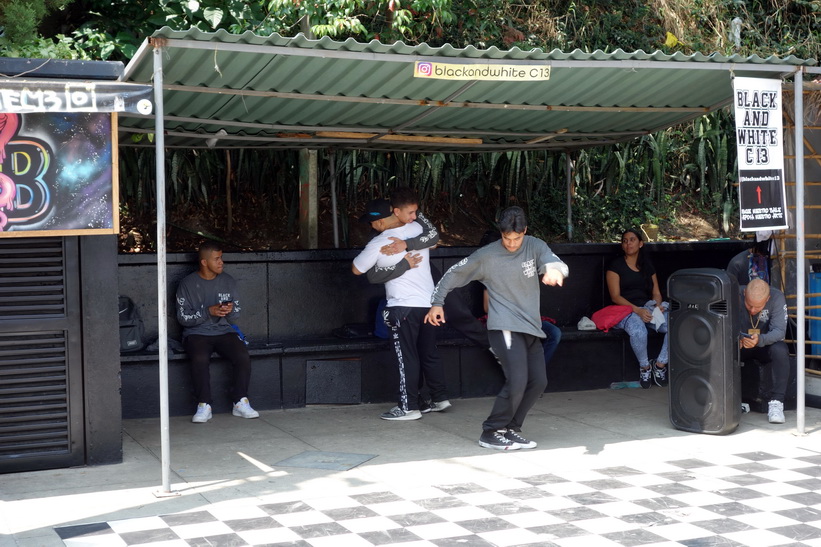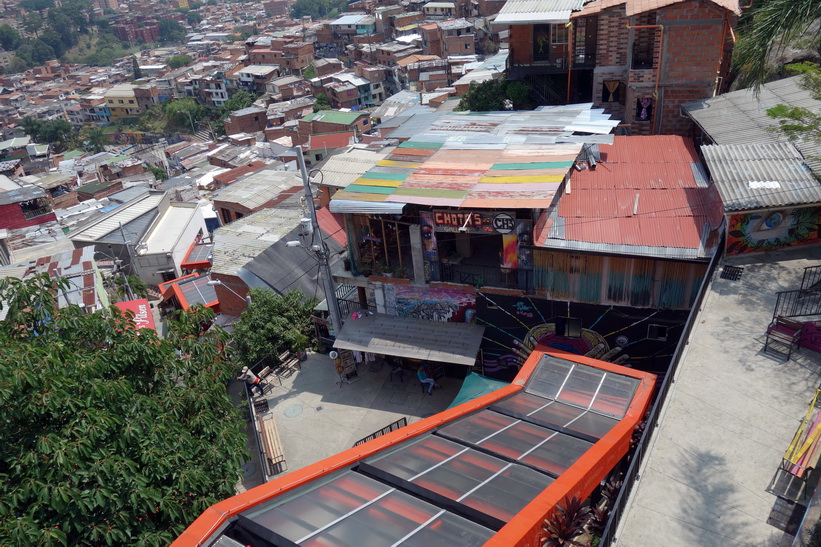 Efter ungefär fem timmar var den guidade turen slut. Trodde jag. Comuna 13-delen var nu slut. Jag och grabbarna tog en buss genom slumområdena till en lokal som är till för musiker och konstnärer i trakten att samlas i. Där fick jag träffa några lokala rap-artister samt några riktigt duktiga konstnärer. Efter en halvtimme i huset tog jag ett känslosamt farväl av Flako och gav honom rejält med dricks. När han tar emot pengarna ser jag hur rörd han blir. Mario följde mig sedan bort till station San Javier station som var på gångavstånd. Väl där tyckte Mario att jag på egen hand skulle ta linbanan från station San Javier till La Aurora som ligger på toppen av den andra delen av Comuna 13. Jag sa farväl till Mario. Jag fick rådet att inte gå ut från någon av stationerna då området rankas som farligt även dagtid. Mario tyckte det var en helt onödig risk att ta, särskilt när jag bara åkte linbanan för utsiktens skull. Jag gjorde som han sa och allt gick bra. Inget verkade farligt på dom här stationerna, men det är svårt att dra sådana slutsatser själv. Saker kan förändras väldigt snabbt om man är på fel ställe vid fel tidpunkt något jag är väl medveten om. Linbanan var verkligen värd varje minut då man får se slumområdena rada upp sig på marken mellan de gröna kullarna. Otroligt intressant!