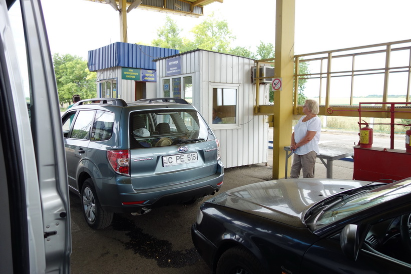 Framme vid gränsområdet kör vi förbi ett flertal vägspärrar med tungt beväpnade soldater och schäferhundar. Efter ett tag började jag tvivla på att vi skulle passera någon riktig gräns! Skulle vi ens få stämplar i passet? Självklart skulle vi det men allt verkade riktigt mystiskt. Plötsligt ser jag hur någon som liknar en gräns kommer allt närmare. Bussen stannar vid bommen som går över vägen och en kvinna i militärkläder öppnar dörren på sidan av minibussen. Eftersom jag sitter närmast dörren frågar hon först mig efter mitt pass. När hon fått mitt pass ber hon mig kliva ur bussen så att hon kan gå in och samla in alla de andras pass ett och ett samtidigt som hon jämför passfotona med ansiktena. När hon kommer ut ur bussen hoppar jag in igen. Efter drygt femton minuter kommer hon med högen av pass i handen och ger dom till mig. Jag letar reda på mitt pass och skickar högen vidare i bussen. När jag kontrollerar mitt pass ser jag att jag fått en ukrainsk utresestämpel. Bussen åker sedan vidare ett par kilometer till innan ytterligare en gräns uppenbarar sig. Här ser allt finare och modernare ut. Vi är nu vid den moldaviska gränsen. Samma procedur utspelar sig igen och efter drygt tjugo minuters stopp är vi på vidare färd igen. Jag kollar igenom mitt pass och ser att jag fått en moldavisk inresestämpel. På sina håll var det riktigt stora hål i vägen så bussen fick köra i krypfart. Men på det stora hela så var vägarna hyfsade hela resan.