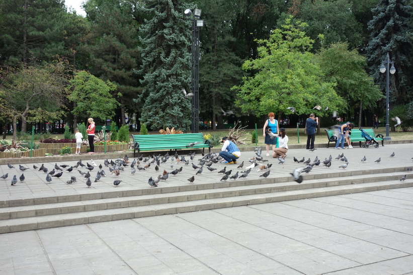 (18/8-15) Det blev en mycket lugn första dag här i Chișinău. Jag har gått några timmar i staden och kollat in de viktigaste sevärdheterna. Chișinău är inte en stad som är känd för att vara fylld av sevärdheter. Det har på sätt och vis också sin charm, då det blir att man mera oplanerat strosar omkring och tar en kaffe här och där och tittar på människor som passerar. Vädret idag har varit relativt svalt för årstiden. Temperaturen har legat på 15-18 grader och det har regnat från och till. Inga störtskurar har det varit men det har regnat i stort sett hela dagen. Centrala Chișinău går ganska snabbt att lära sig. Det är ganska backigt vilket ger bra motion när man är ute och går. Jag har även gått runt i lite områden utanför centrum med riktiga sovjetbostäder. Det gråa vädret gjorde att det såg ännu mera kommunistgrått ut!