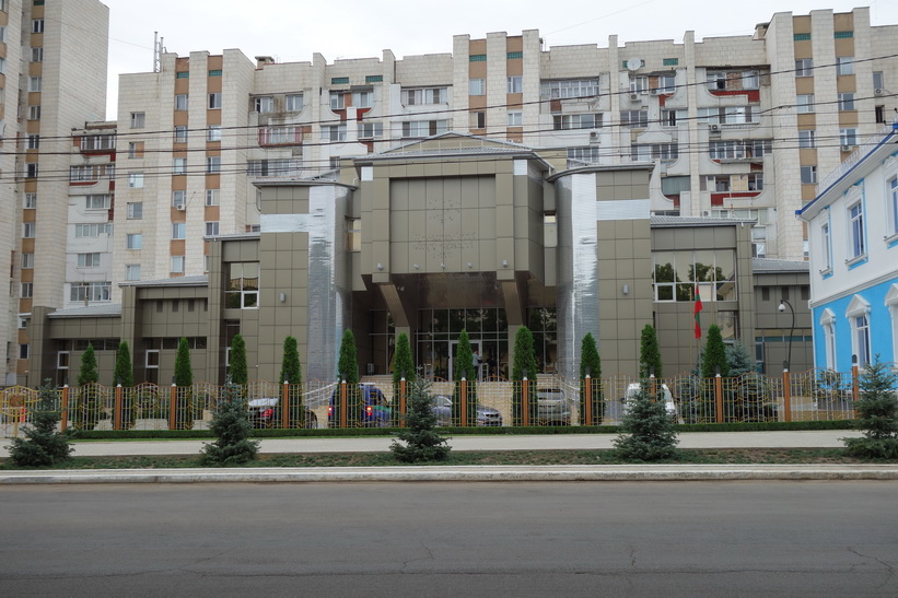 Gammalt sovjetiskt bostadshus i centrala Tiraspol.