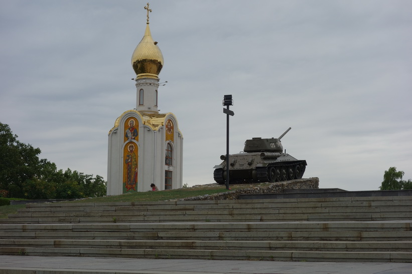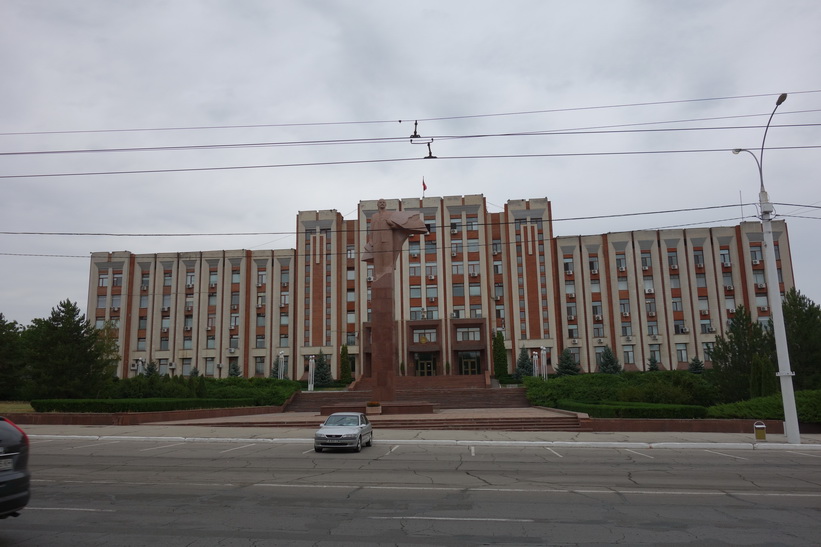 Resan inne i landet fram till Tiraspol via Bender tog runt en halvtimme och var ren och skär njutning. Sådana här gånger får man en kick som är svår att förklara. En känsla av något okänt och farligt. Jag var inne i Transnistrien! Det jag hoppades på när jag klev av bussen på busstationen i Tiraspol var att jag skulle klara mig hyfsat utan karta. Jag hade förberett mig genom att ladda ner Tiraspol i google maps, så jag kunde köra den offline. Eftersom jag inte visste var busstationen låg i förhållande till centrala Tiraspol var jag tvungen att chansa lite på riktningen. Innan jag gick växlade jag till mig 200 transnistriska rubel. Jag använde mig av MLD vid växlingen mend hade lika gärna kunnat ta några av mina dollar- eller eurosedlar. Efter att ha gått en bit insåg jag att jag var körd här vad gällde gatunamnen i jämförelse med kartan, då gatunamnen var på ryska (en variant på det kyrilliska alfabetet). Jag lyckades ändå ganska snabbt inse att jag närmade mig Strada 25 Octombrie, som är gatan där de flesta sevärdheter ligger. Jag gick i rätt riktning. När jag plötsligt fick se siffran 25 på en gatuskylt så visste jag med säkerhet att jag hade gått rätt. Bara att välja höger eller vänster. Valde att ta höger vilket innebar västerut, då gatan går i väst-östlig riktning. Efter en liten bit längs Strada 25 Octombrie stannade jag och passade på att äta lunch. Efter att ha ätit så gick jag längst bort till den västra änden av gatan medan jag iakttog folket och trafiken. Det kändes lite märkligt, med relativt lite trafik. Folk tittade väldigt nyfiket på mig, vilket jag märkte tydligt. I övrigt kändes det nästan som vilken stad som helst. Längst bort i västra änden av gatan är det en War Memorial med en sovjetisk stridsvagn och en minnesplats med en evig låga som brinner till minne av de som dog den tredje mars 1992 under krigets första utbrott. Efter att ha kollat in War Memorial gick jag bort till den östra delen av gatan där den välkända arga Lenin-statyn står framför House of Soviets-byggnaden. Precis när jag står och fotograferar Lenin så kommer det en kille från Polen som är ute och reser som mig. Vi hjälpte varann med varsitt foto framför Lenin! Polacken hade kommit till Transnistrien bara för en timme för att växla till sig alla valörer av landets valuta! Valutan är ju minst sagt lite svår att få tag i utanför Transnistrien och han var samlare. Hade det inte varit för honom hade jag aldrig upptäckt att landet har mynt tillverkade av plast!