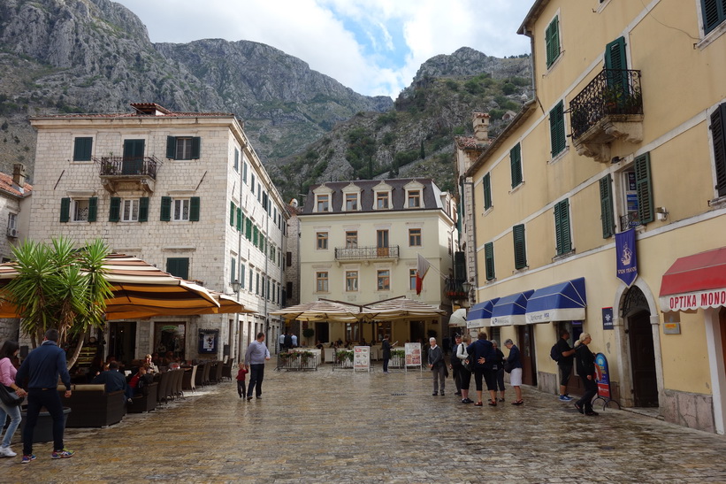 (11/10-15) Precis som Dubrovniks gamla stad och Splits Diocletianus palats så finns gamla staden i Kotor på världsarvslistan. Idag var det dags för mig att åka till Kotor i Montenegro. Jag hade en bussbiljett med avgång klockan 11.00. Eftersom det har regnat oavbrutet i ett par dygn nu så hade jag ren tur när jag gick till busstationen eftersom det var uppehåll då. Jag har suttit inne rätt mycket sista dygnet på grund av det dåliga vädret så jag kände att jag ville få den här promenaden till busstationen innan jag skulle sätta mig i bussen. Det visade sig att bussen var en halvtimme försenad. Mig gjorde det absolut ingenting med förseningen. Värre var det för de tre kinesiska grabbarna från Peking som hade ett flyg till Budapest från Tivat som ligger sex kilometer från Kotor. Avgången var 15.20 så det började se riktigt illa ut för grabbarna. När vi nådde gränsen mellan Kroatien och Montenegro tog det otroligt lång tid och allting verkade väldigt oproffsigt. Det var strul med passen och en del konstigt tjafs med de asiatiska passagerarna. När bussen började rulla så var det en kille från Spanien som fortfarande inte fått tillbaka sitt pass! Riktigt dåligt. Mitt pass tog dom inte ens i beslag för inspektion. Gränspolisen kollade bara lite snabbt på det och sedan fick jag tillbaka det direkt. Ibland känner man sig privilegierad med sitt svenska pass