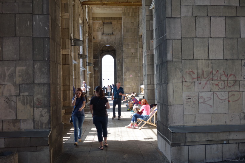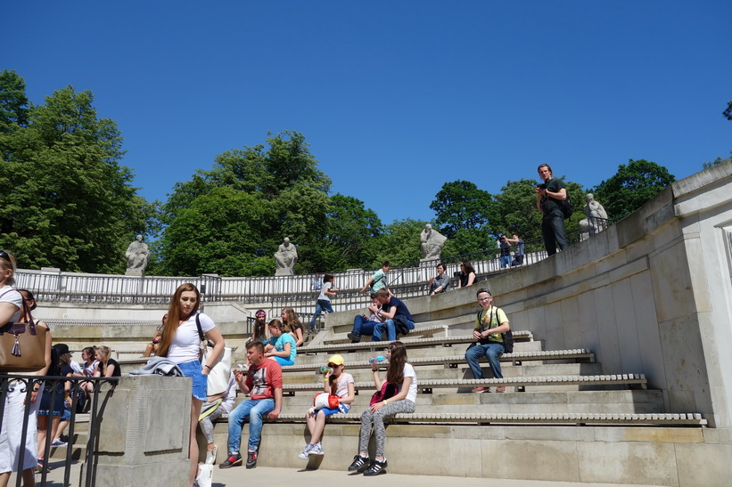 (26/5-16) Idag var planen att åka och besöka Museum of the History of Polish Jews, Łazienki Park och Palace of Culture and Science. När jag kom ner i tunnelbanestation Dworzec Wileński som ligger ett stenkast från mitt hotell, blev jag väldigt förvånad. Klockan var strax efterklockan nio på morgonen och det var nästan folktomt. Det första jag tänkte på var att det kunde vara ett bombhot och att stationen var utrymd. Efter att ha pratat med en av vakterna på stationen som knappt kunde någon engelska, lyckades jag få fram att det var helgdag i Polen idag. Vad det var för helgdag framgick inte. Jag insåg att åtminstone ett par av de ovanstående sevärdheterna eventuellt inte skulle ha öppet idag. Jag hade inte någon möjlighet att kolla öppettider då jag inte hade någon telefon med mig. Jag bestämde mig för att fullfölja mina planer och samtidigt ha lite beredskap för att göra något annat ifall något av ovanstående var stängt. Det började inget vidare då det visade sig att Museum of the History of Polish Jews var stängt.