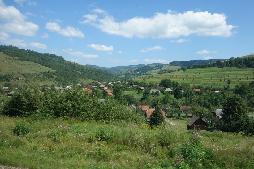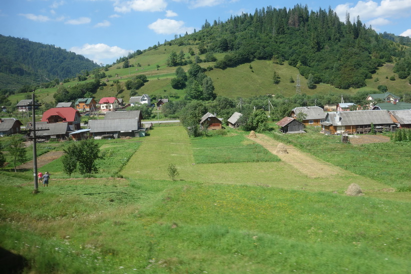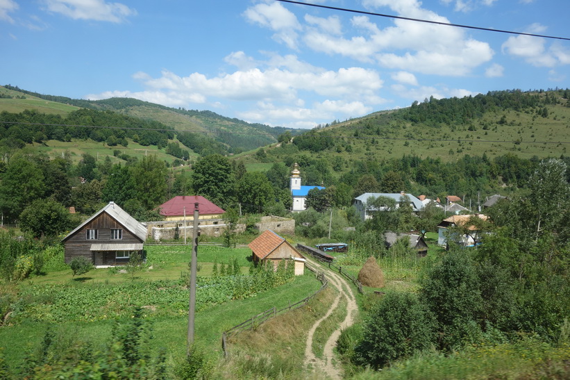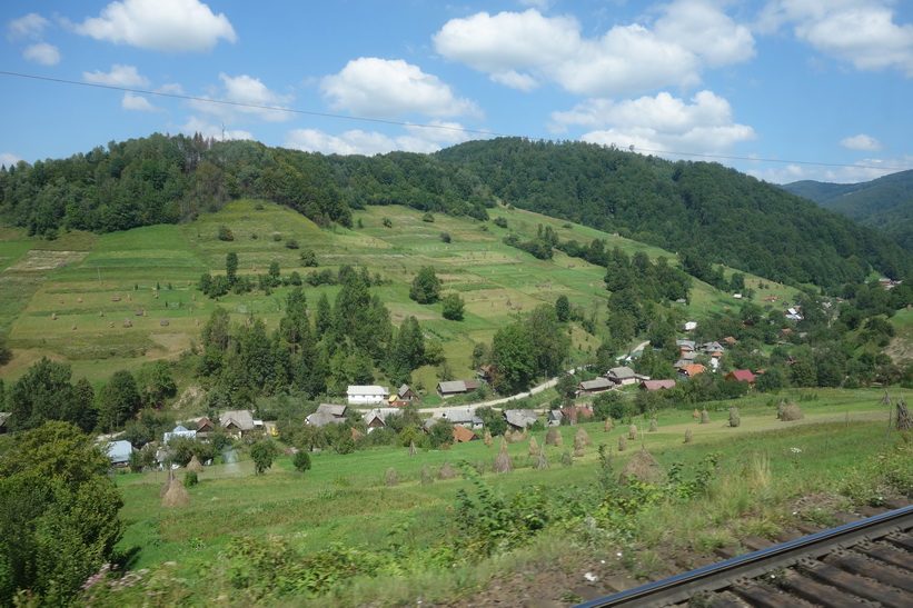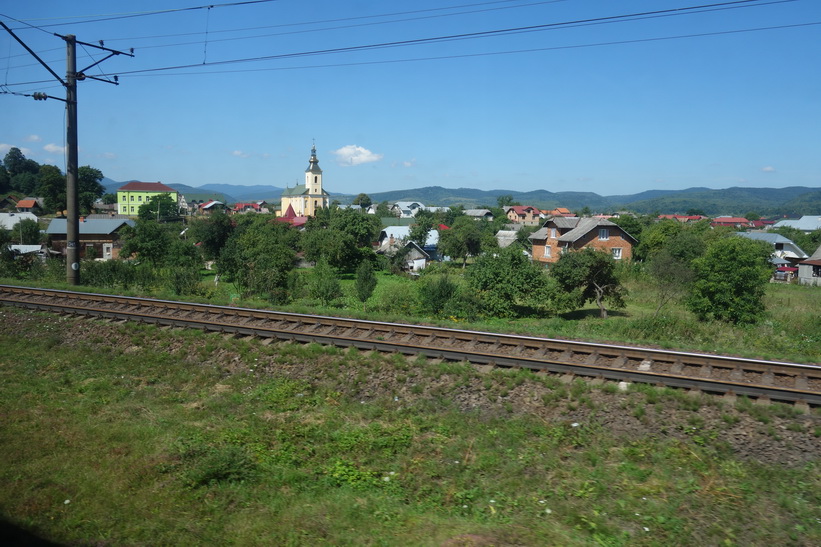 (9/8-16) Det har varit en mycket trevlig dag. Jag tog tåget klockan 10.10 från Lviv till Uzhhorod, staden som ligger så långt västerut man kan komma i Ukraina. Det var en vacker tågresa som tog mig genom delar av Karpaterna. Berg är något som är ovanligt i det annars mycket platta Ukraina. Jag måste säga att det var härligt att få se lite berg! Tågresan gjorde mig faktiskt gladare och lugnare än på mycket länge. Tågen fungerar bra här i Ukraina. Utsatt ankomsttid till Uzhhorod var satt till 16.10 och tåget anlände 16.30. Helt ok med tanke på att tågresan varade i lite mer än sex timmar. För att ta sig till Uzhhorod tar tåget en liten omväg via Chop som ligger vid den ungerska gränsen. Detta gör att tågresan mellan Lviv och Uzhhorod totalt blir ungefär 30 mil.