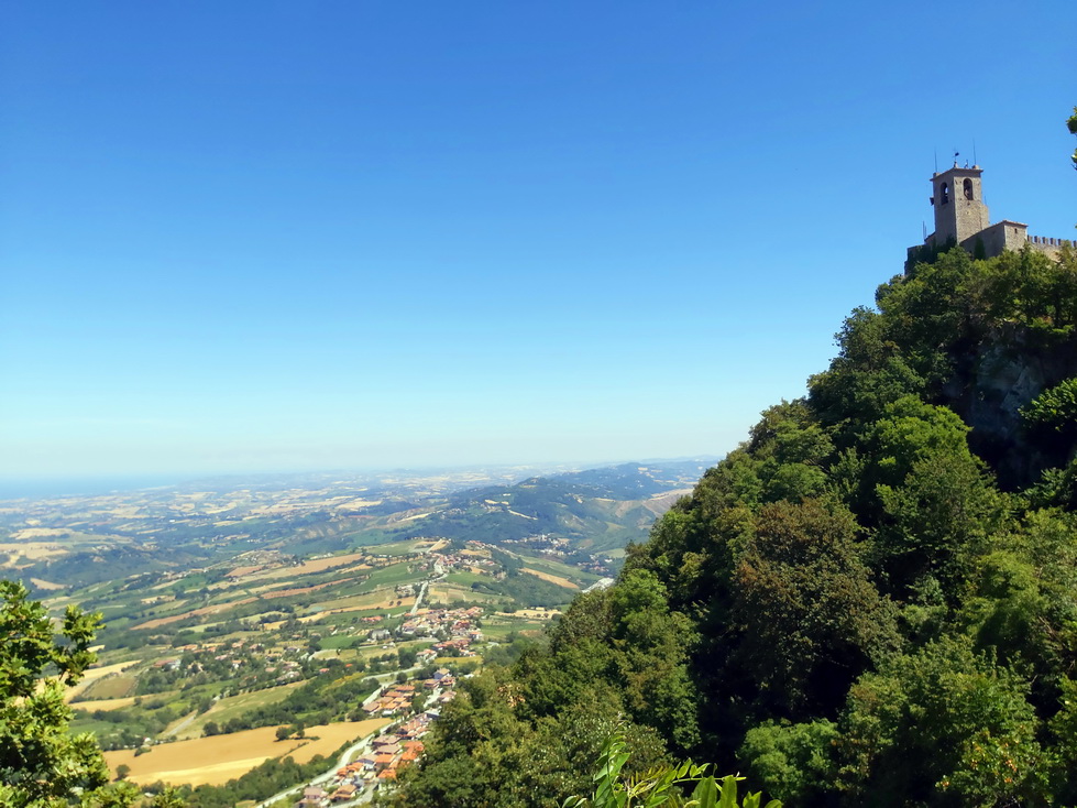 (20/6-22) Det har varit en helt fantastisk dag här i San Marino. Jag började dagen med att promenera runt till i stort sett alla platser jag besökte igår. Fast i lugnare tempo. Det var en helt annan upplevelse på morgonen än på eftermiddagen i och med att det var så mycket mindre folk överallt. De flesta turister som besöker detta lilleputtland gör det på en dagstur. Jag är otroligt glad över mitt beslut att stanna här i ett par nätter. Man slipper stressen som en dagstur naturligt för med sig samt så får man en möjlighet att ha de flesta sevärdheter för sig själv när folk har lämnat på eftermiddagen. Efter att ha käkat lunch på hotellets otroligt trevliga restaurang blev det en trekkingtur bortom de områden jag tidigare besökt. Det blev en väldigt givande tur med otroligt vackra vyer. Precis som igår har vädret varit fantastiskt idag.