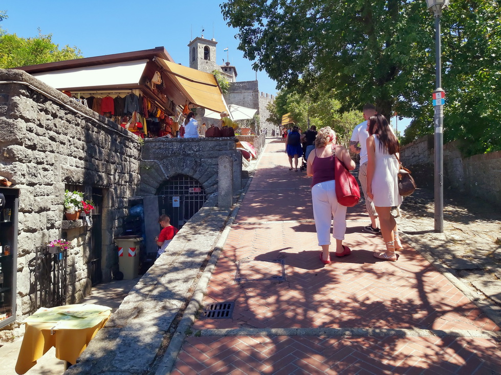 (19/6-22) Två och en halv kilometer promenad från hotellet till busshållplatsen för bussar till San Marino. Busshållplatsen ligger mittemot tågstationen i Rimini så den är enkel att hitta. Det behövdes inte mycket research igår för att få fram den informationen samt att man köper biljetter till bussen i liten tobaksaffär i närheten. Jag passade på att köpa tur- och returbiljett på en gång. Igår hittade jag även tidtabellen för bussarna till San Marino vilket gjorde planeringen enkel. En enkel resa mellan Rimini och San Marino kostar i dagsläget 6 Euro. Resan tar bara 40-45 minuter vilket är trevligt.