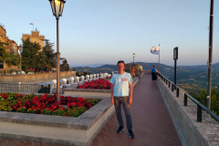 Jag hade bestämt mig för att jag idag inte skulle missa solnedgången som igår. Var på plats på en av dom bästa ställena i landet för att njuta av solnedgången ungefär en halvtimme före solnedgången. Det blev en helt fantastiskt bra avslutning på en i stort sett fulländad dag. Jag och bara några personer till var på plats och en av dom var Eugene, en 25-årig utbytesstudent från Singapore som bor och pluggar i Belgien. Jag tog kontakt med honom och vi pratade säkert i en och en halv timme om allt mellan himmel och jord. Om resor i Asien och Europa och livet i stort. Det är som vanligt alltid en stor förmån med resandet att möta människor så här. Jag fick dessutom äntligen några riktiga bilder på mig själv tagna av Eugene innan solnedgången. De blev jag väldigt glad för, då jag annars inte hade haft några bilder på mig själv från min vistelse i San Marino. Jag är inte alltid så noga med det men detta land är lite speciellt då det är mitt sista land i Kontinentaleuropa.