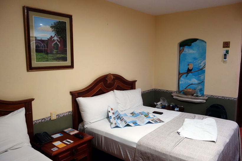 Resten av dagen bestod av vila och att göra några ärenden. Vanliga ärenden och praktiska saker har plötsligt blivit större projekt nu. Hotellet jag bor på är väldigt trevligt och mysigt med relativt enkla men bra rum. Med tanke på att jag bara betalar 625 pesos per natt så är det ett riktigt kap. Frukost ingår ej för det priset. Jag tror för övrigt inte det går att få frukost ens på detta hotell. Restaurangutbudet i denna stad är magiskt bra, vilket underlättar den situation jag befinner mig i. Det lär nog ta ett tag att testa alla restauranger bara i de närmsta kvarteren runt hotellet.