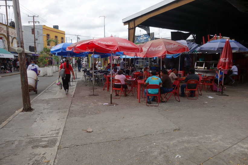 Jag blev kvar i Progreso ända till 17-tiden och det blev ett par måltider och även några drinkar, vilket var väldigt länge sedan. Den första måltiden blev en tonfiskstek med potatis. Det var riktigt gott och det var hög klass både på maten och servicen och dessutom mycket prisvärt. Jag fortsatte sedan till ett annat ställe där det blev några drinkar och en kaffe, och till sist tog jag en sallad innan jag satte mig på bussen tillbaka till Mérida. En mycket trevlig dag.