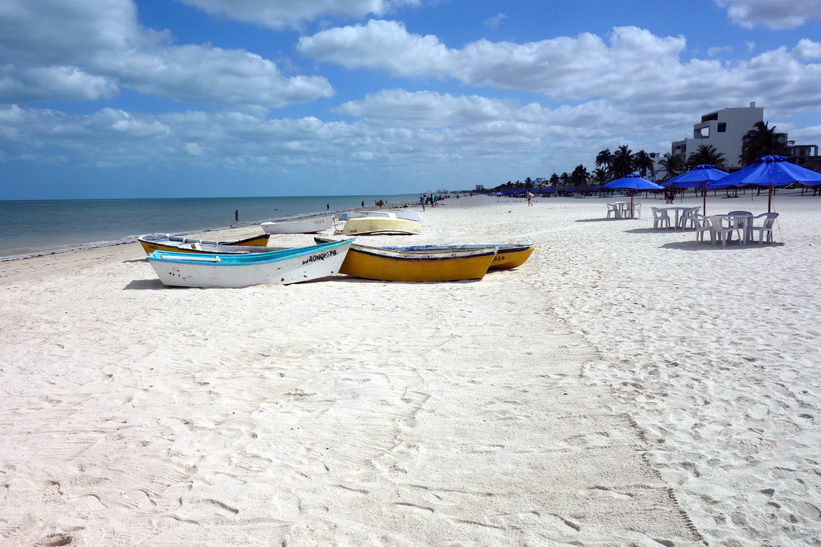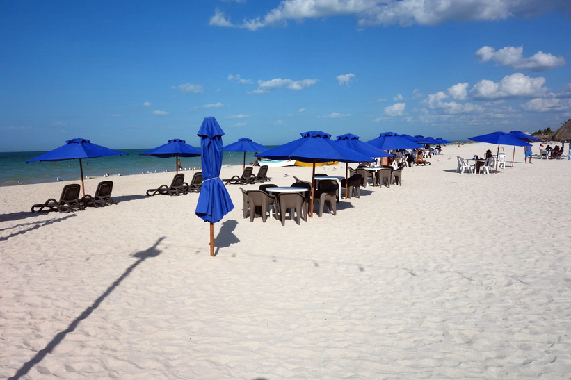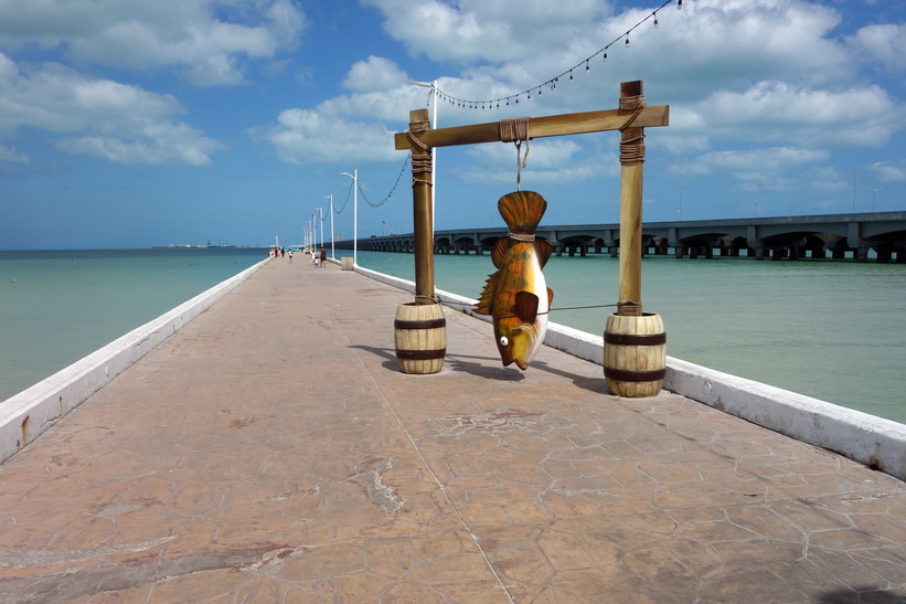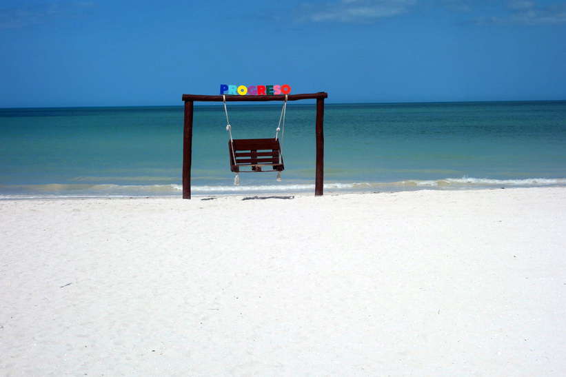 Busstationen i Progreso de Castro var perfekt belägen bara ett par kvarter från stadsstranden. Jag gick direkt dit och fick en se en riktigt fin tropisk strand. Mycket rent och fint på gatorna i staden och längs stranden. Självklart är inte vattnet lika klart som i Tulum. Det verkar som att man har byggt en helt ny strandgata, Malecón de Progreso, och den är otroligt fin. Mysiga restauranger och verkligen lugn och fin stämning gjorde att jag snabbt fastnade för denna stad. Dom enda gringos jag såg var bofasta. De flesta verkade vara amerikaner och kanadensare. Staden har världens längsta pir. Hela 6.5 kilometer lång är den!