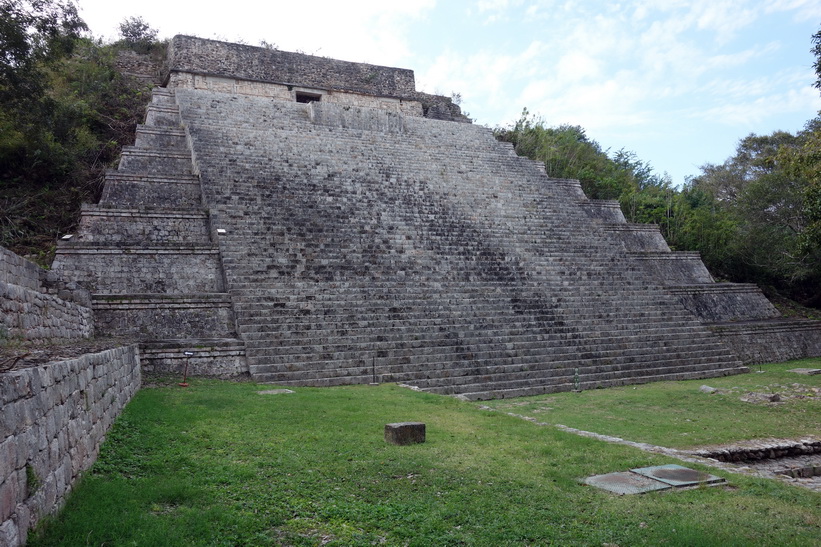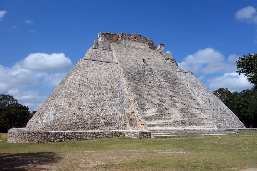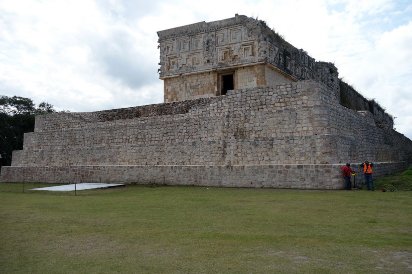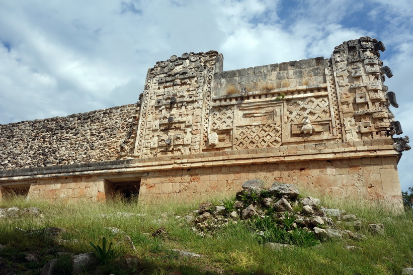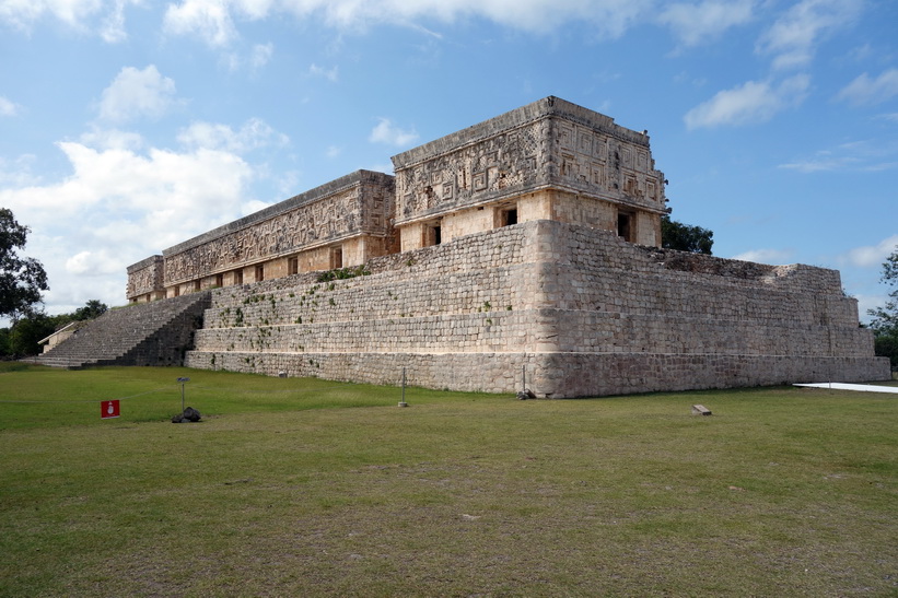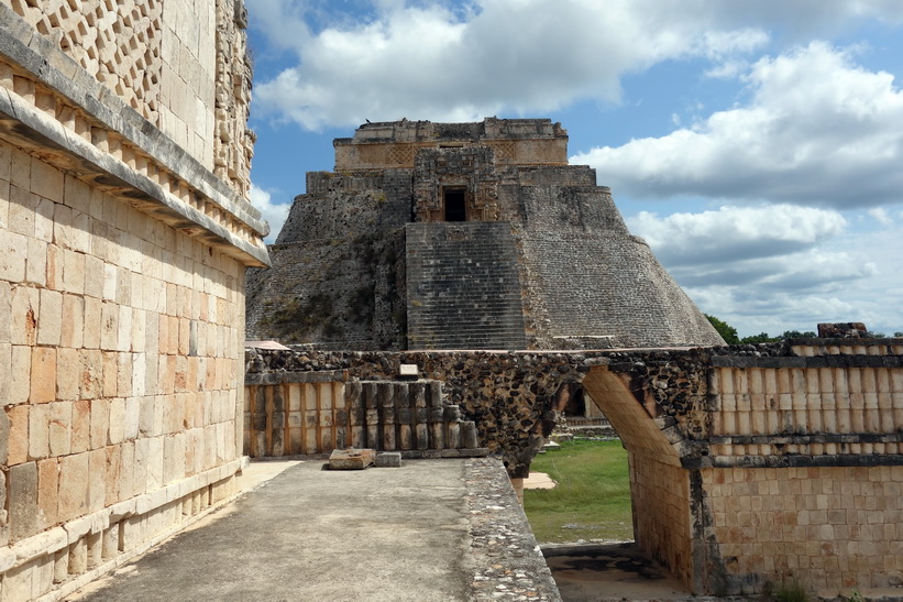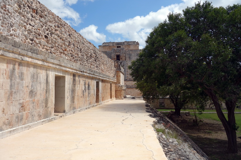 Uxmal är ganska enkelt att navigera med relativt bra skyltning. Jag var bland dom första in på området från vår buss och blev också klar tidigt. Jag hade hört att det skulle gå en buss tillbaka till Mérida klockan 13.30 och klockan var runt 12-tiden när jag var klar med hela Uxmal. Det gjorde att jag bestämde mig för att gå ett varv till och fokusera på de platser jag inte fokuserade så mycket på det första varvet. Det här blev väldigt lyckat. Platser där det under mitt förra besök stod folk och tog selfies eller där det var någon grupp med guide var nu tomma. Det första man möts av när man kommer in på området är kanske den ståtligaste byggnaden av dom alla, Pyramid of the Magician. Många av de resterande byggnaderna är också storslagna.