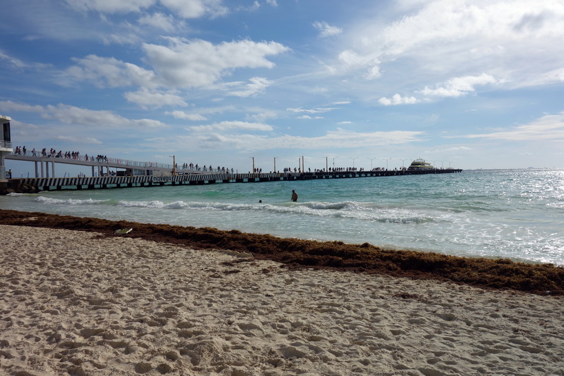 Efter frukost på restaurang Ceiba så var planen att ta en ADO-buss till Puerto Morelos några mil norr om Playa del Carmen. När jag kom fram till busstationen var det rena kaoset där så jag skippade det och tänkte att jag kunde åka på eftermiddagen istället. Tanken var att jag skulle ta en halvdag där. Busstationen ligger hyfsat nära Playacar beach så jag beslöt mig för att fortsätta dit då jag hade badkläder packade i ryggsäcken. Jag spenderade hela förmiddagen på Playacar vilket var en godkänd strand. Samma problematik som på de andra stränderna i närheten finns dock här också. Rätt mycket sjögräs. Inte bara vid strandkanten utan även i vattnet vilket inte är optimalt att bada i. Men det fungerade ändå bra. Vattnet är riktigt svalkande och skönt!