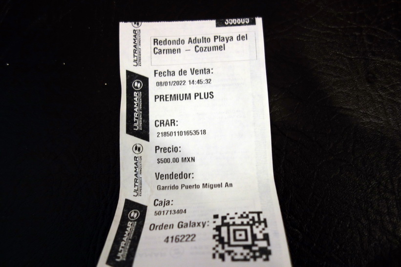 (9/1-22) Planen för idag var att ta färjan över till den kända turistön Cozumel. Jag köpte en tur och returbiljett redan igår för 500 peso. Avgångstiderna idag för Playa del Carmen-Cozumel var 09.00, 11.00, 13.00, 15.00, 17.00, 19.00 och 21.00. Jag ville komma iväg så tidigt som möjligt då jag planerade att cykla den 65 kilometer långa vägen som täcker stora delar av öns kust (med undantag från den norra delen). Jag gick upp i god tid och åt frukost på mitt favoritställe. Dom är otroligt trevliga på restaurangen och det känns som att dom behandlar mig redan som en stamgäst. Hotellets personal är också otroligt trevliga. De få språkförbistringar som uppstår på grund av min obefintliga spanska löses med skratt och lite google translate.