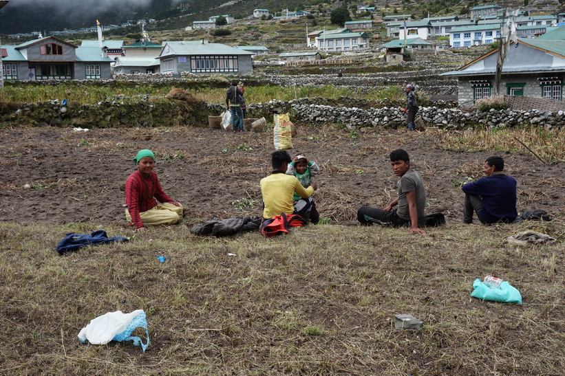 En halvtimme upp längs branten finns det en rastplats där man har chans att få en första skymt av Mount Everest. Trots nästan helklart väder när jag kom dit så var det lite moln längre upp mot Everest vilket gjorde att jag inte såg berget alls. På rastplatsen träffade jag en sherpa som var på väg hem till Namche Bazaar efter en lyckad toppbestigning av Manaslu för någon vecka sedan. Manaslu är med sina 8156 meter över havet världens åttonde högsta berg. Det hade varit folk från Schweiz och Australien med på expeditionen. Medan vi fortsatte uppåt mot Namche Bazaar fick jag hela det äventyret berättat för mig! Det var mycket intressant att få äran att träffa denna trevliga och spännande personlighet. Att få kontakt med lokalbefolkningen på detta sätt är som alltid en stor extra bonus.