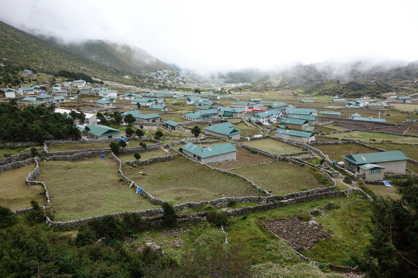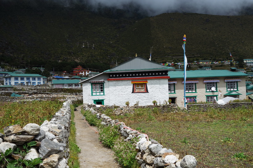 (15/9-17) Jag vaknade vid 8-tiden och kände mig relativt pigg och fräsch. Ingen huvudvärk och ingen känsla av att må dåligt på något sätt. Det verkade som att kroppen kommit ikapp med acklimatiseringen. Det enda som störde min nattsömn var att jag fick gå många gånger på toaletten. Det var nog läkemedlet Diamox förtjänst då det är kraftigt vätskedrivande! Idag är det acklimatiseringsdag här i Namche Bazaar. För att hjälpa kroppen att acklimatisera sig ännu bättre och snabbare gjorde jag en acklimatiseringstrek upp till höjder runt 4000 meter idag. Det blev en vandring enligt följande rundslinga: Namche Bazaar-Hotel Everest View-Khumjung-Khunde-Syangboche-Namche Bazaar. Vandringen var otroligt trevlig och varade i ungefär fem och en halv timme och sträckan landade på drygt 12 kilometer. En rejäl promenad med andra ord. Jag tyckte särskilt mycket om byn Khumjung som var otroligt mysig. Jag gjorde även ett besök på skolan i Khumjung som byggdes med medel från Sir Edmund Hillary’s fond år 1961.